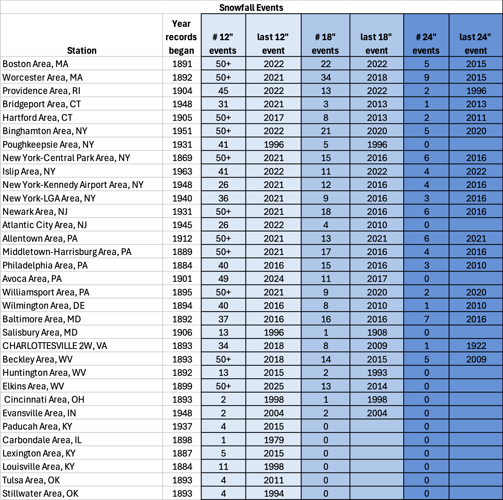 - The Binghamton, NY and Avoca, PA areas could both see over a foot of snowfall; such snowfall totals are common in those areas with Binghamton last seeing 12 inches in 2022 and Avoca in 2024.